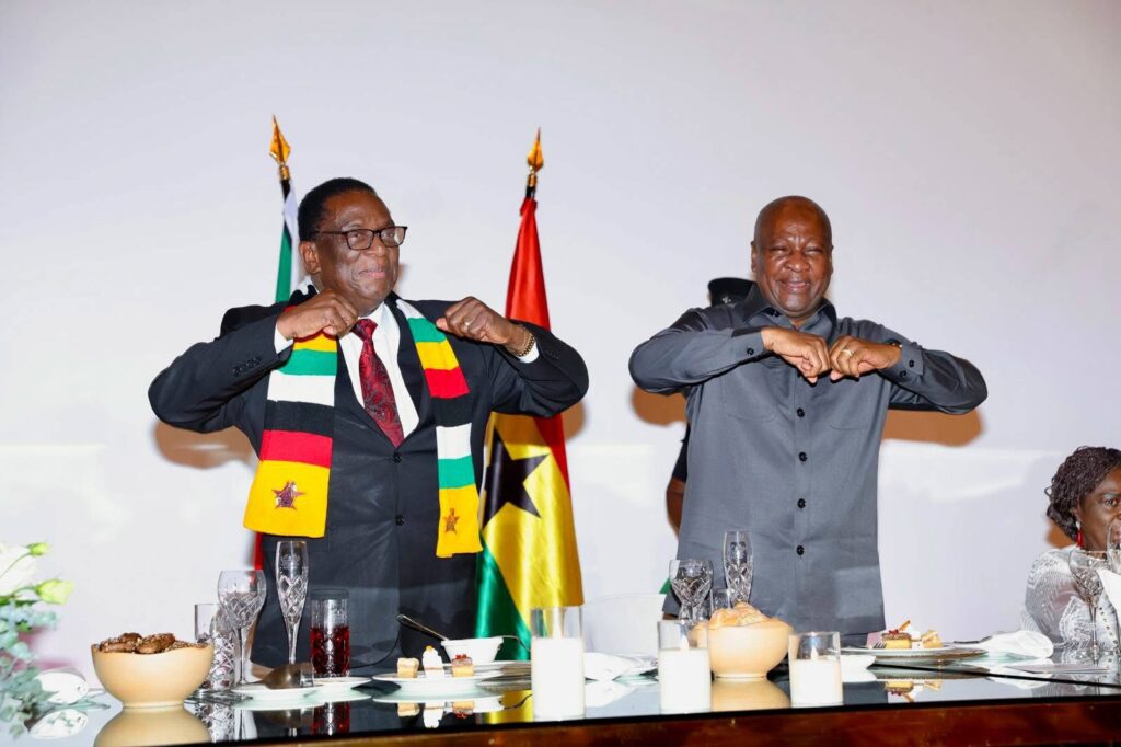 Accra, Ghana – In a defining moment for African diplomacy and economic cooperation, His Excellency President Dr. Emmerson Dambudzo Mnangagwa has reaffirmed Zimbabwe’s commitment to strengthening continental partnerships following a high-level State Banquet hosted by Ghanaian leader John Mahama in the vibrant capital of Accra.